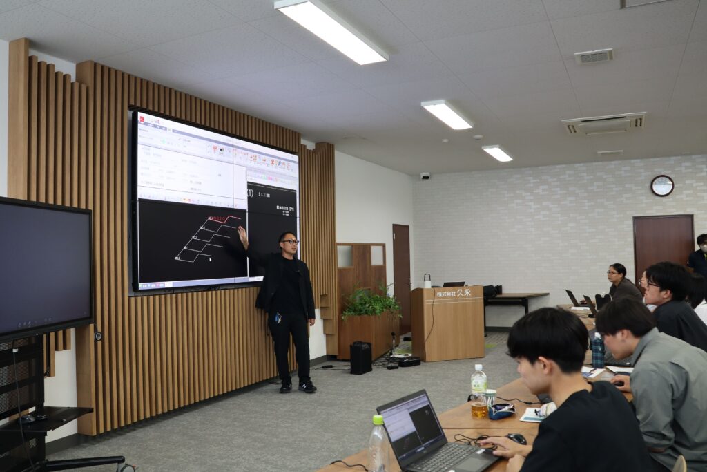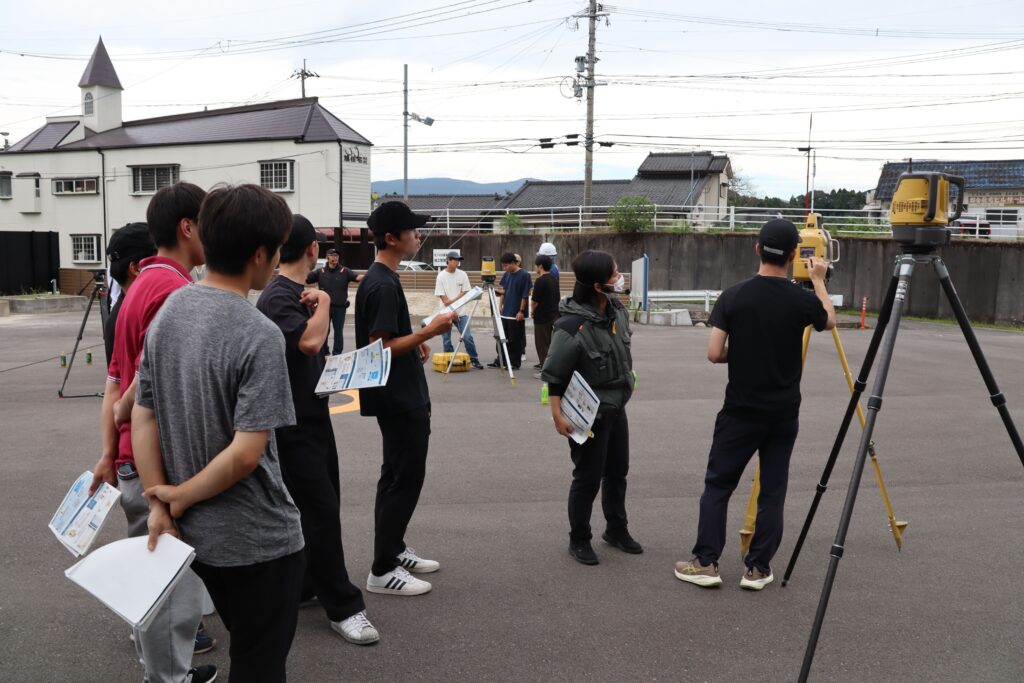 株式会社久永様のご協力の下,建設ICT技術の活用に必要な3次元測量機器の操作,および3次元点群データを用いた設計図面の作成についての実習を行いました。実習は二日間にわたって行われ,初日は3次元点群データを用いた設計図面の作成,二日目は3次元測量機器の操作について学びました。