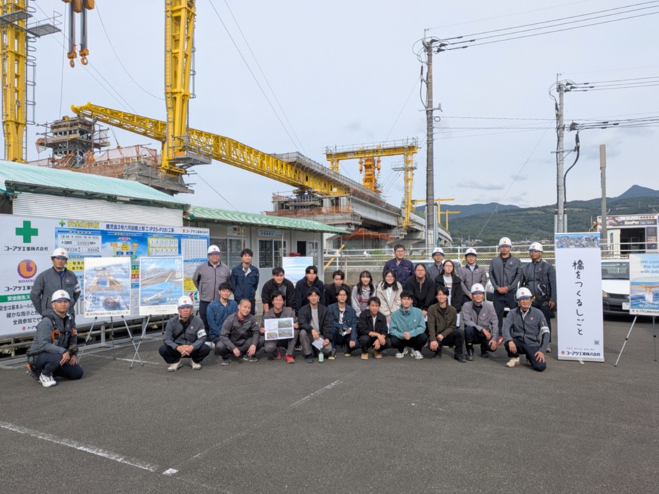 11月4日に,株式会社安部日鋼工業,コーアツ工業株式会社のご協力のもと,六月田橋(出水市)の橋梁上部工の工事を見学してきました。